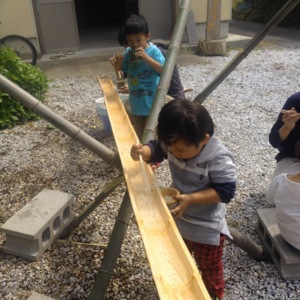 今年は毎年恒例の屋外講座「そうめん流し」です。