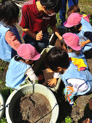 (保育園児さんとの交流からもうれしい驚き・発見をいただいていますた)