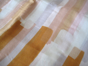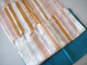白ラメ・カーキ・オーカーのストライプにターコイズブルーの大人シックな布に