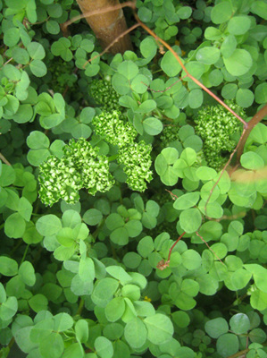 可愛い葉っぱの中で何気に育ってきている野菜は何でしょう?