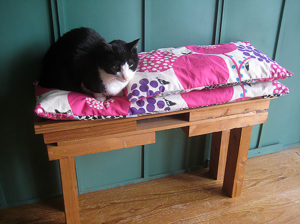長椅子もお手製だので、この長さのこの幅の座布団はもちろん巷には売っておらず、