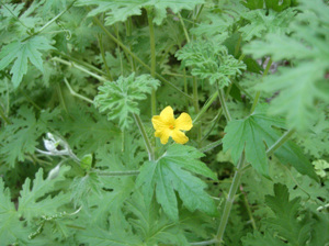 ではなく、ゼラニウムの間に侵食して咲いたゴーヤの花w