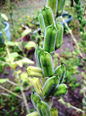 雨で湿っているので、ゴマが中からはじけ飛ばずとりやすかった。