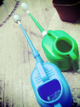 ひとりで水やりをしていると、ときどき、控えているじょうろにお水が満杯になっているときがある。