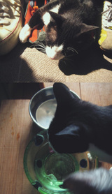 ピザ生地を冷凍庫へ持ってってる途中で目が合った。