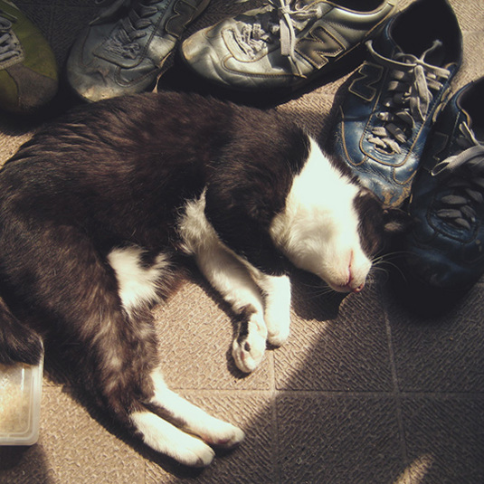 靴を枕に日向ぼっこる自宅警備員。。。