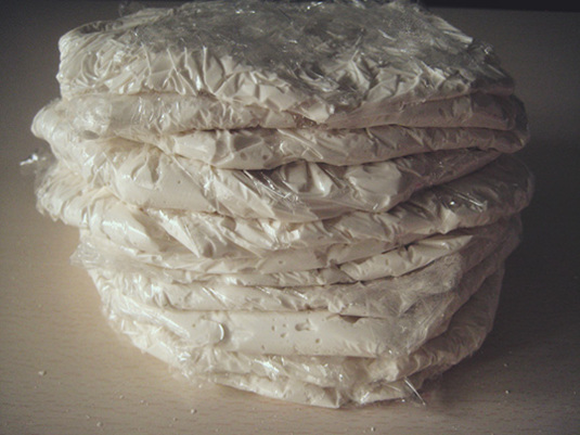 ピザ生地は13枚分完成。ラップに包んで冷凍保存。