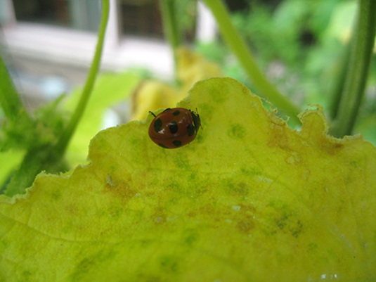 暑いから、テントウムシも日よけ。