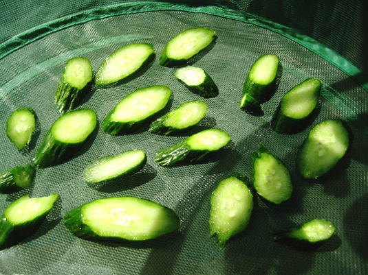干しキュウリは、そんなに干さない。だいたい朝〜夕で、イイ感じになる。