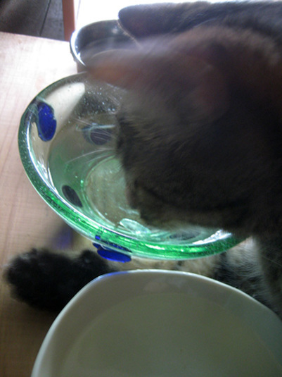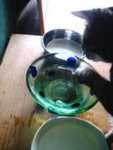 自宅警備員たちの水入れに、氷を1つずつ入れていく。