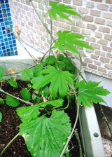 ゴーヤの鉢内に移植後、マイペースにでっかい葉っぱを付けて、