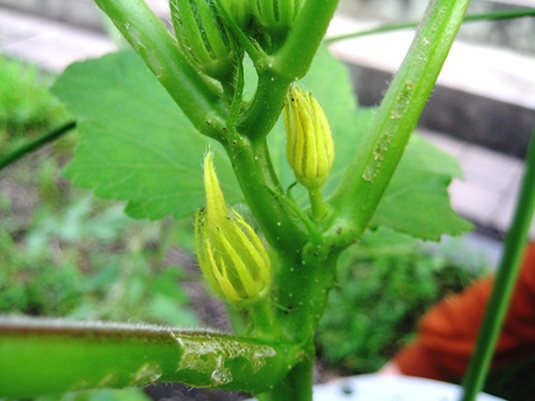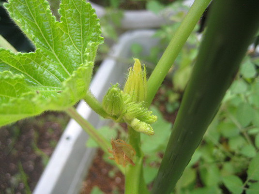 ミントの鉢から勝手に生えてきて育ったゴーヤの苗は、