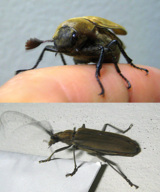 通常のカミキリムシは顔もカワイイからなんとなく平気なのだが。。