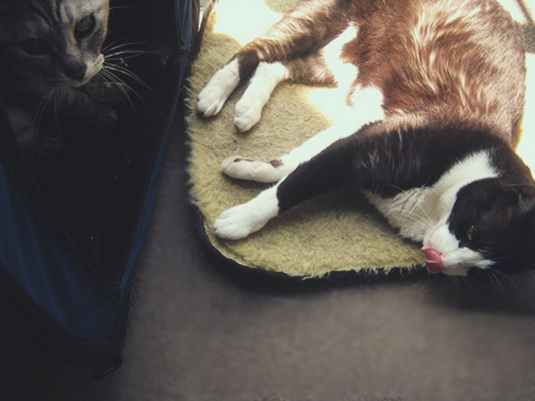 長老アズキ氏の好きな、他猫への顔うずめを、じゃまするワケにもいかぬし。
