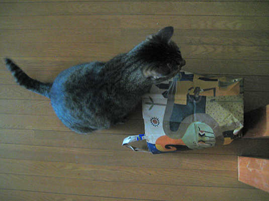 あ、ちなみにコレもご近所さんからのいただきものの猫専用いれものです。
