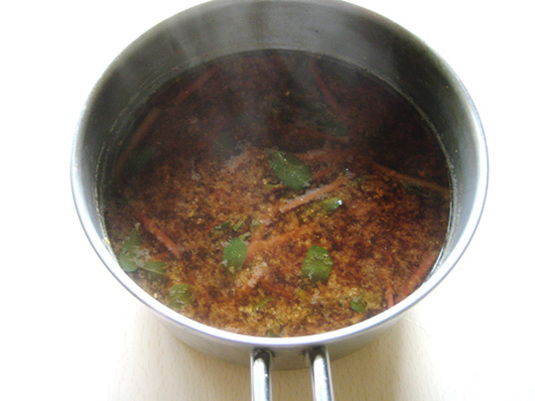 切り干し大根の戻し汁と、スベリヒユで、お味噌汁。