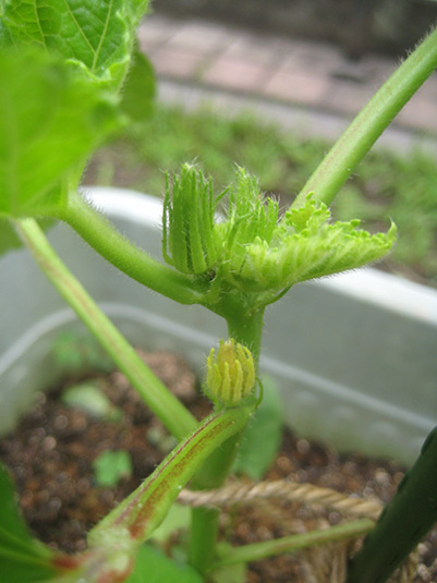 胡瓜が下のほうで花を咲かせたけど、コレは取らないといけないんだって。