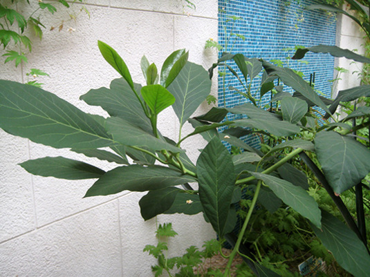 後ろの白い壁に到達しようかという手前で、ぐに〜っと上向きに急上昇の枝。
