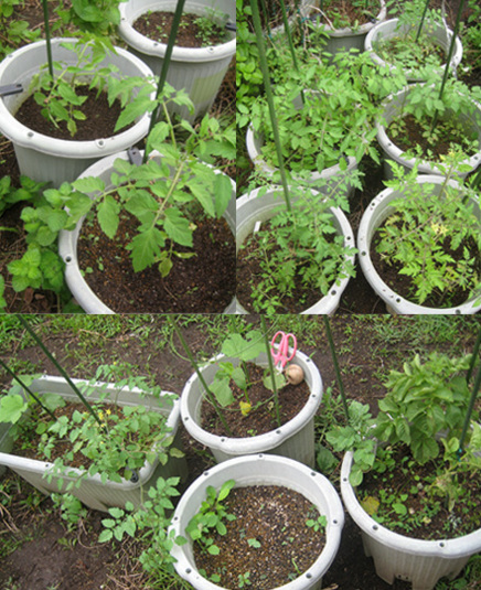トマト、オクラ、ミニトマト、ジャガイモ、スベリヒユ、野生化放置キャベツ、桑の樹小さい子、