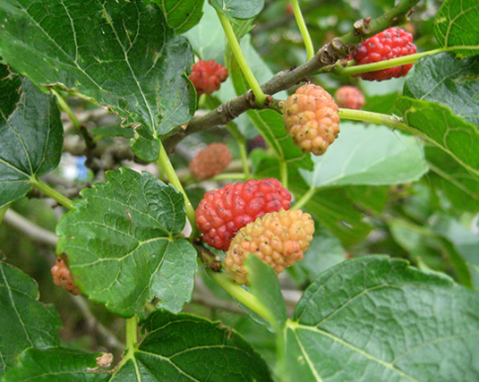 相変わらずまだまだ実を実らせている桑の樹の実。