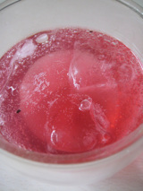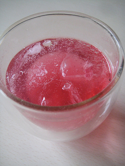 梅酢じゃないな。「赤紫蘇を塩と黒酢とレモン汁とでもんだあとの汁気で作ったぜドリンク」だw