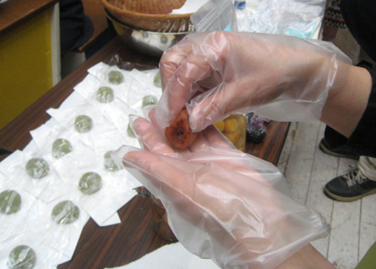 アレー、コレ先日の和菓子の講座の時と同じ白あんなのか????なんか違う気がするぞー。