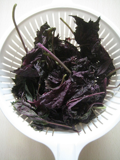 無農薬の、コレまた貴重な赤紫蘇も使って下処理。
