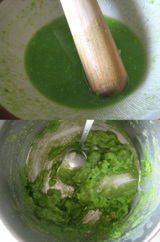 茹でたグリピと水を擂り鉢に入れて、適当につぶしながらまぜあげる。