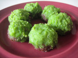 冷凍してたあんこを丸めて、丸めたあんこのまわりにぺっぺと、グリピをはっつけてく。