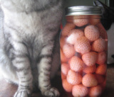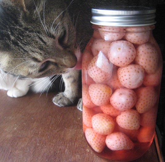 取り出した苺は、砂糖水で煮詰めればまた色が戻るそうですが、