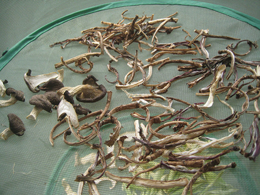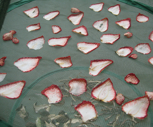 竹篭(竹ザル)に入れたものを網に入れて干したほうがよかったかな?