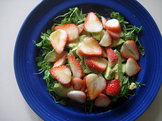 アボカド、苺、適当に切って、を乗せて、