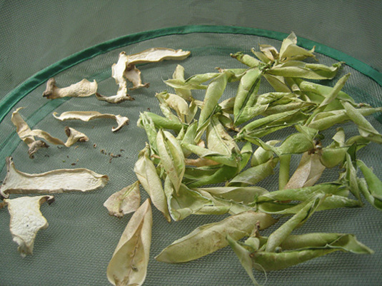 グリーンピースの莢はもうほぼ完成しているっぽい。