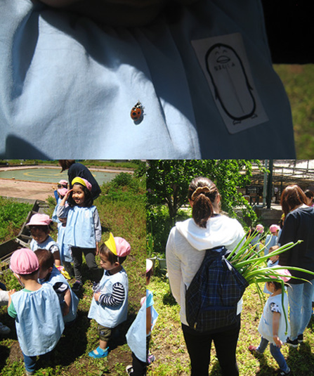 テントウムシがスモックにとまってキャーキャー言ったり、