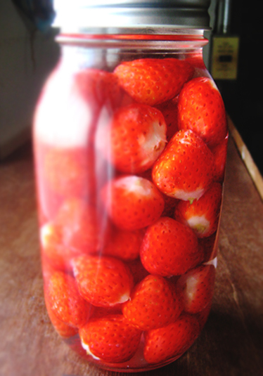 グリーンライフ講座のリモンチェッロのレシピで、苺チェッロ。