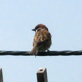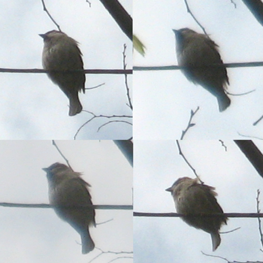 天空では、強風にスズメ。