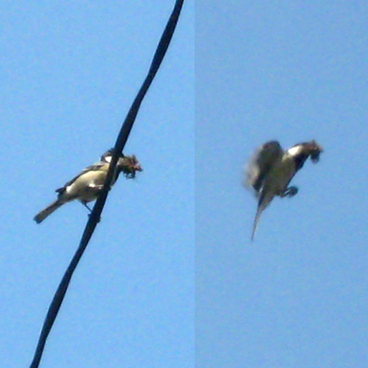シジュウカラにしてみれば、アホみたいな大きさの黒い鳥が飛んでくるんだから、怖いだろうなあ。。
