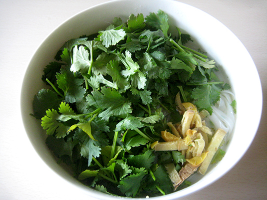 パクチーは勿論アホ盛り。フォーもアホ盛り。生姜も太めに切ってアホ盛り。