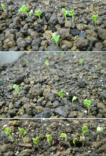 先に紹介してた、朝から芽が出てた子らは、さらに伸び。