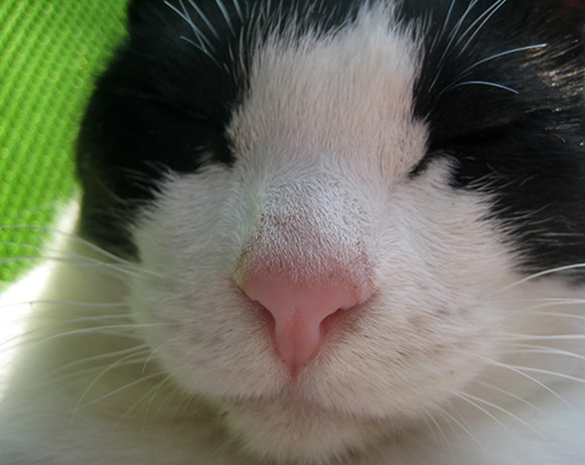 そんななか、天日干ししていた座椅子にて、ひなたぼっこ、さしみさん。