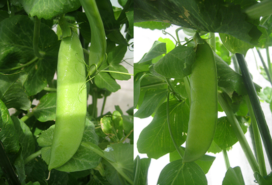 コチラもプックリ。天空のサヤエンドウ中だった、グリーンピース、グリーンピース化へ進行か。
