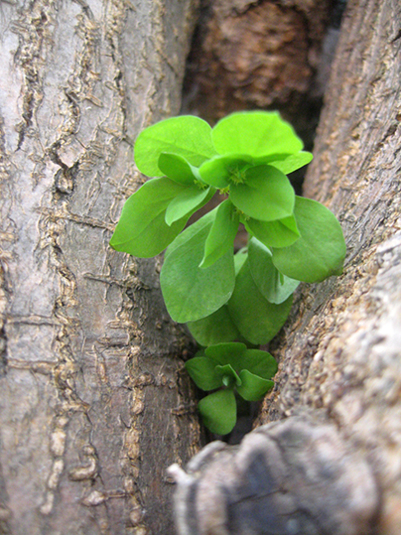 幹の間から生えた、チョット名前まだ分かんない野草も生長中。