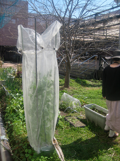 もう彼ら(小松菜、水菜)は、かなりワイルドに生長してきてるだから大丈夫だろうと、拝借。