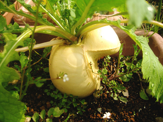 お餅がやぶれたような感じで育っている小蕪もいますw