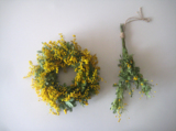 使わなかった、切り余ったミモザは、捨てられる前に小さなスワッグにしました。