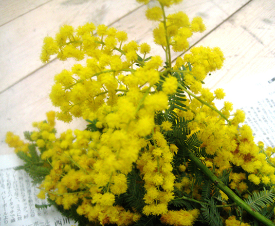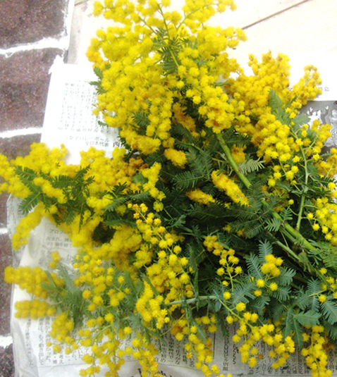 今年は暖冬の影響で、ミモザも早く育ってて、丁度ギリ、イイ時期のミモザだったらしいです。