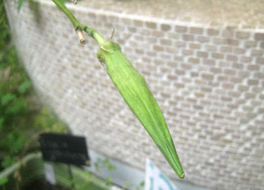 オクラの葉っぱは全部落ちたケド、実がいくつか残って育っていて。