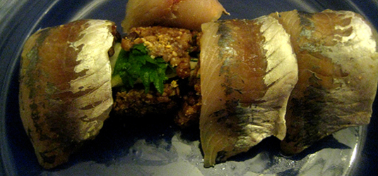 上に乗せたあじの刺身をペラッとめくって撮ろうとしたときに、