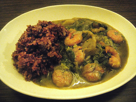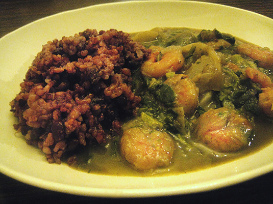 ココまでだと、キレイなホワイトカレー系&海老のオレンジ色が可愛いカレー。