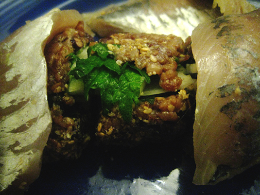 酢飯は、梅の甘黒酢漬け、生姜、すりゴマ、寝かせ玄米(小豆入り)、